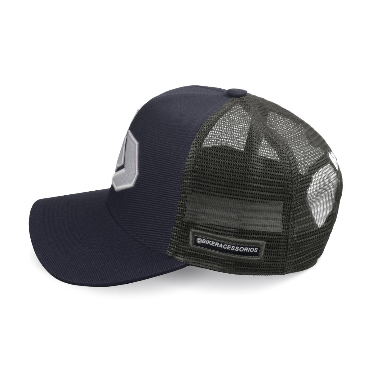 Logomarca bordada em 3D com aproximadamente 4mm de relevo.