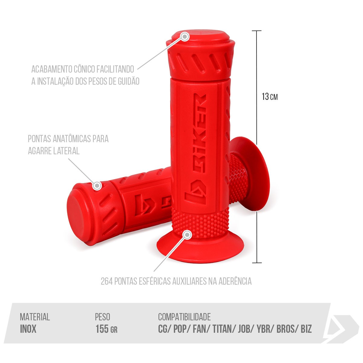 Motocicletas com guidões 22mm (7/8”) aço ou alumínio.