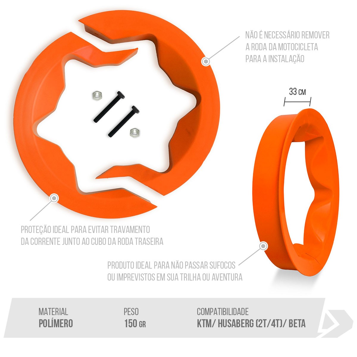 Proteção ideal para evitar travamento da corrente junto ao cubo da roda traseira.