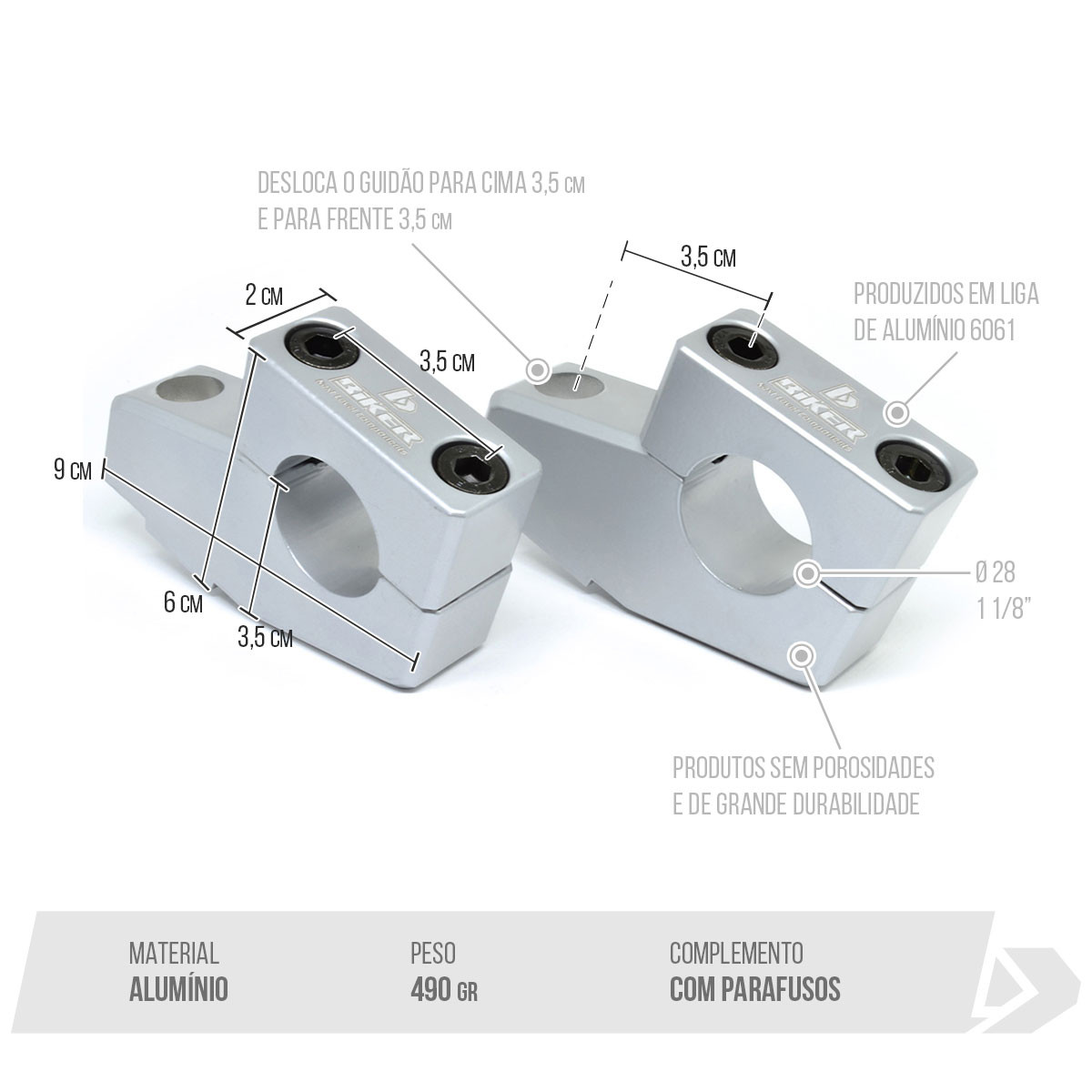 Tem por função principal deslocar o guidão para cima 35mm e para frente 35mm.