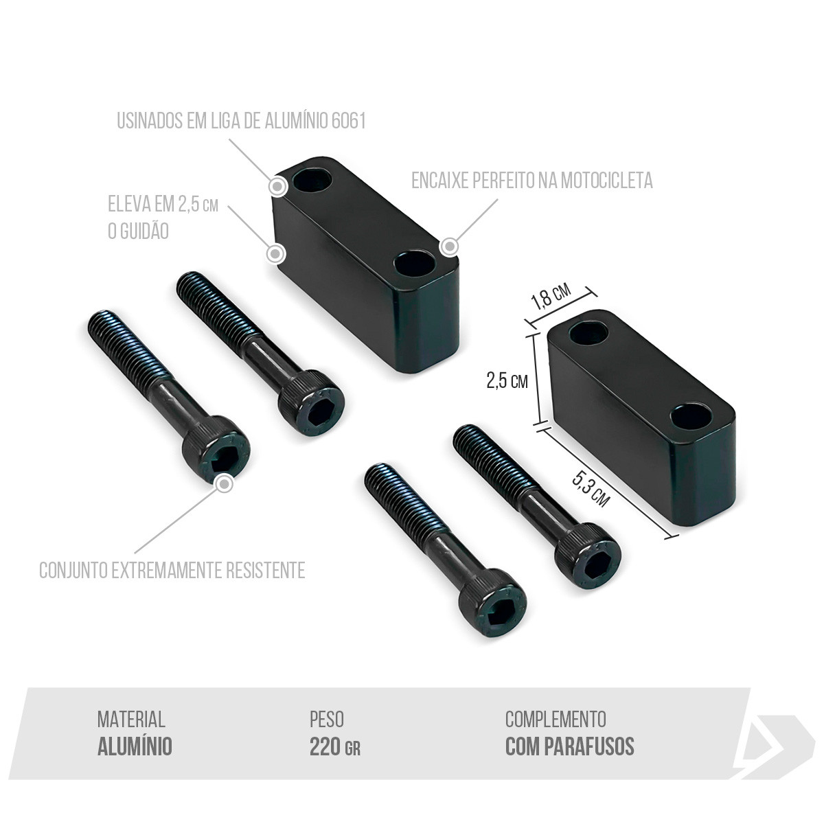 Os Adaptadores de Guidão para MXF 270F tem por função elevar o guidão em 25 mm.