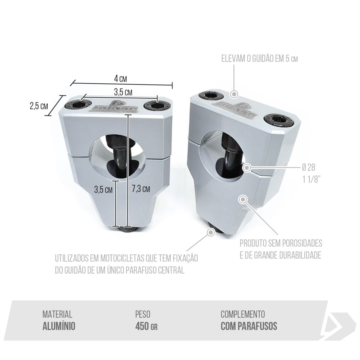 Indicados para melhorar a postura de pilotagem. Elevam o guidão em 50mm.