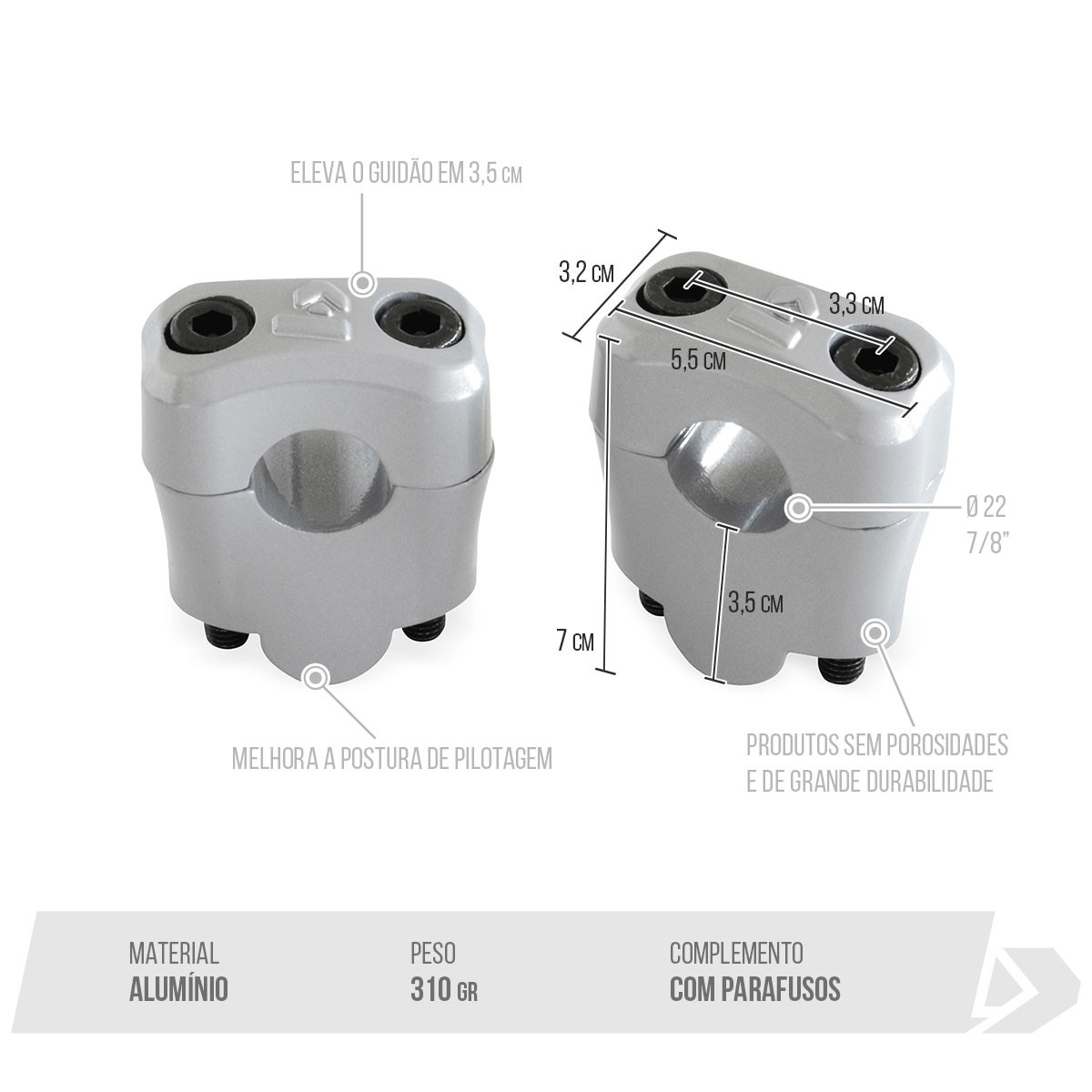 Os Adaptadores de Guidão com medida Ø22 X 35mm tem por função elevar o guidão em 35 mm.