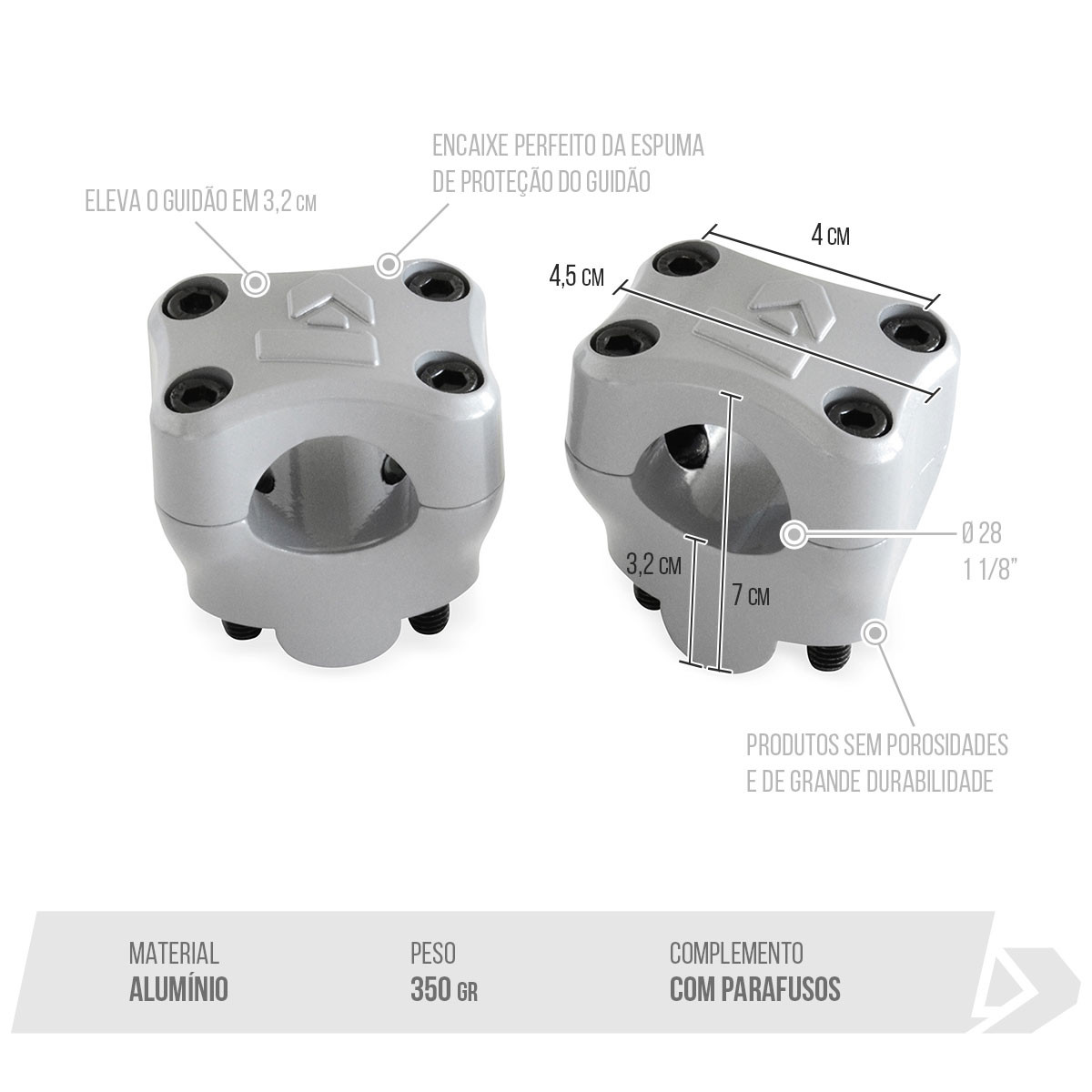 Adaptadores de guidão com medida Ø28.5 tem por função elevar o guidão em 3,2 cm.