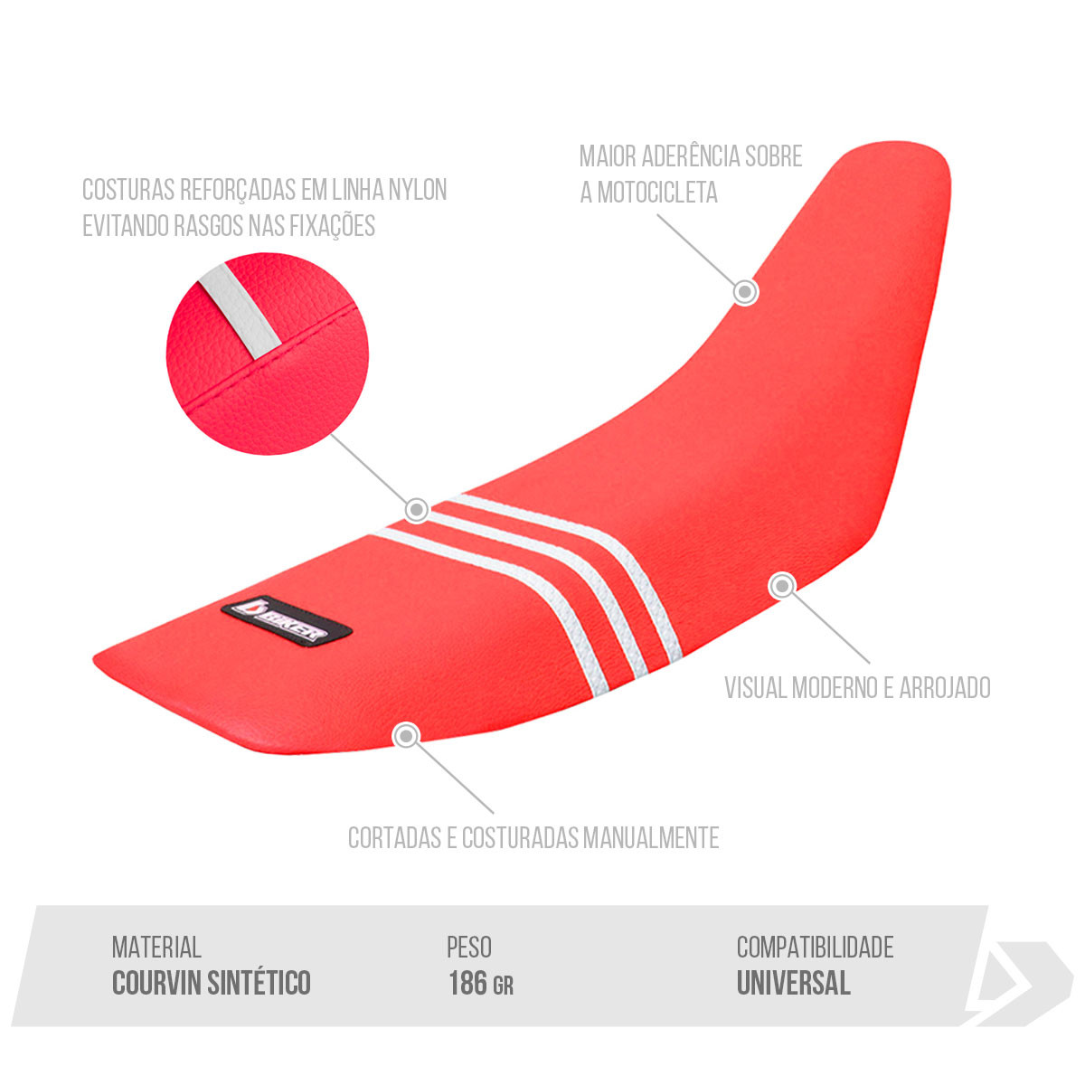 As capas de banco modelo S3 oferecem ao piloto maior aderência sobre a motocicleta.