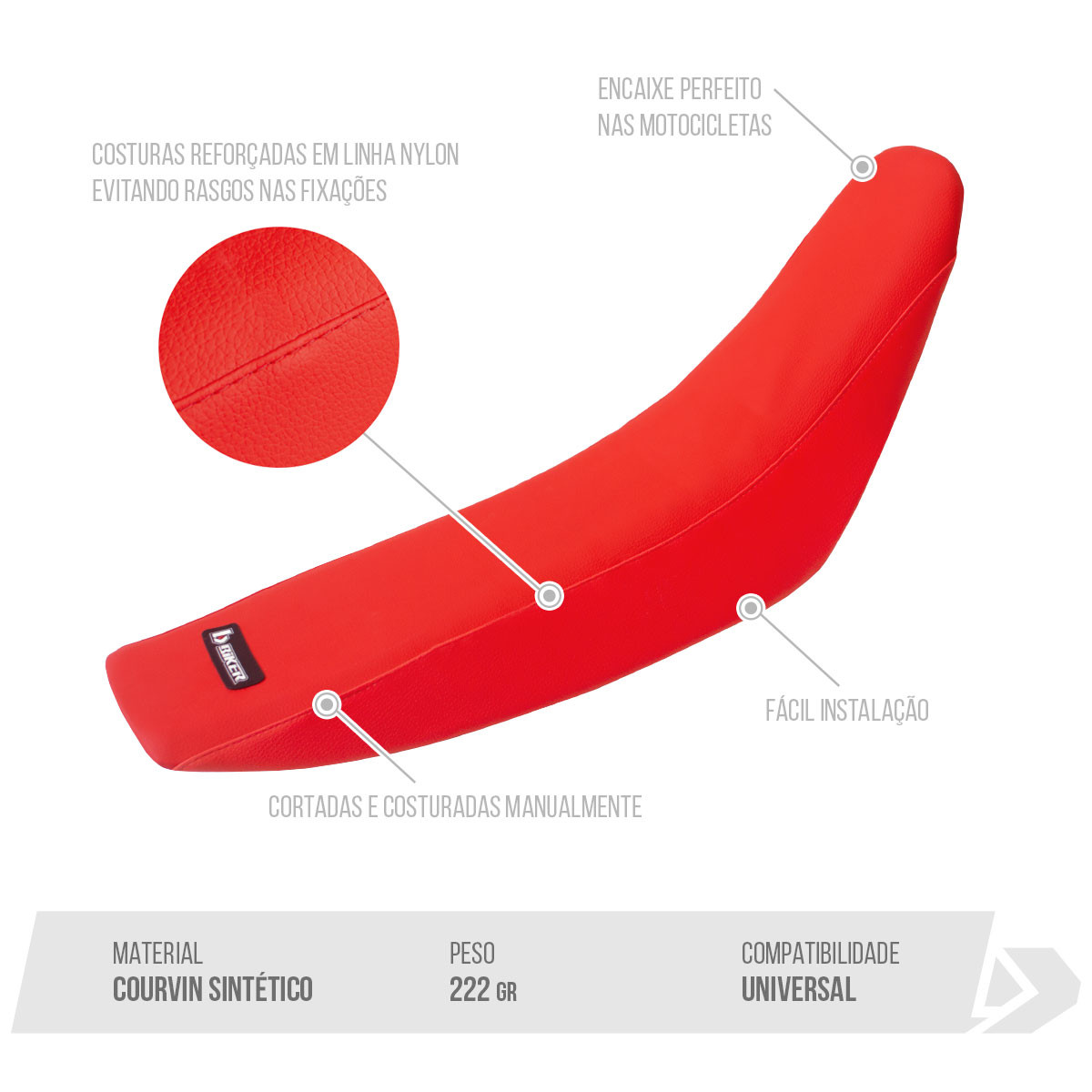 Possuem encaixe perfeito nas motocicletas. Costuras reforçadas em linha nylon.