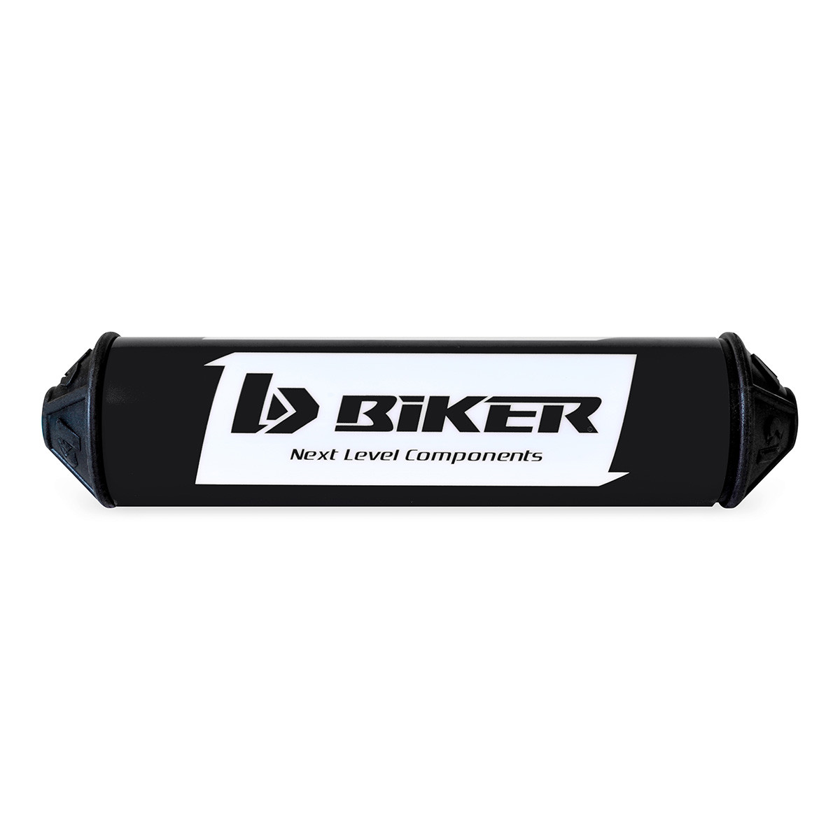 Logotipo Biker Acessórios em relevo nas abas laterais do protetor.