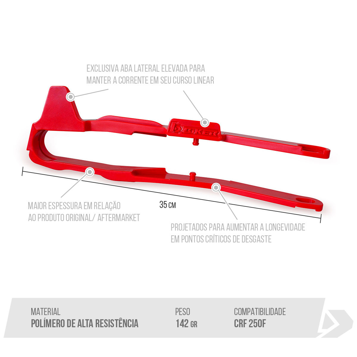 Fabricados em polímero de alta resistência a abrasão gerada pela corrente da motocicleta.