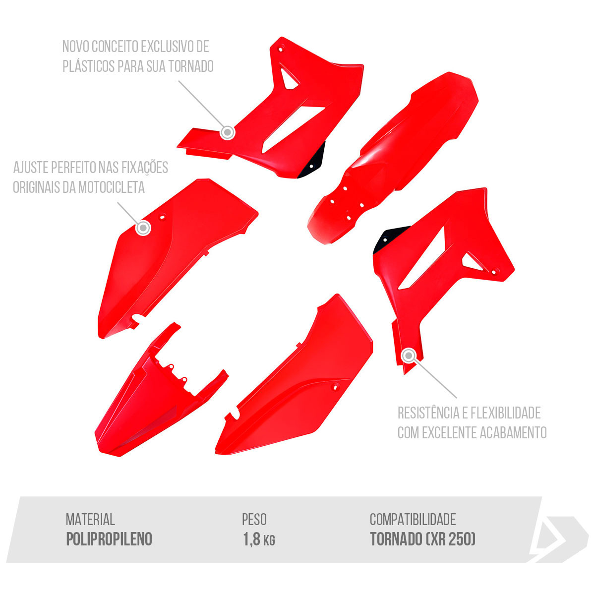 Kit Plástico R1DE XR 250 Tornado é composto pelos seguintes itens: