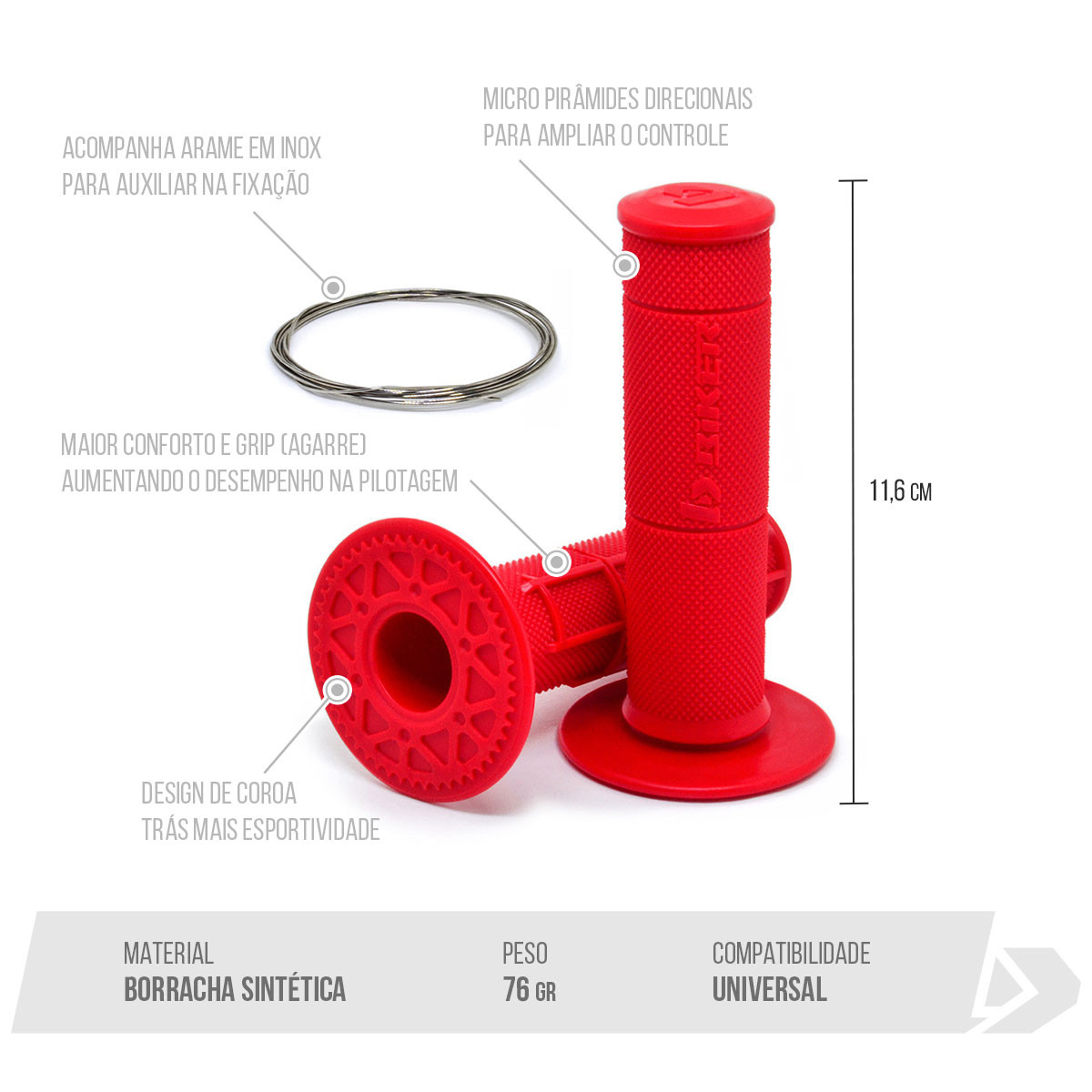 Maior conforto e grip (agarre) aumentando o desempenho na pilotagem.