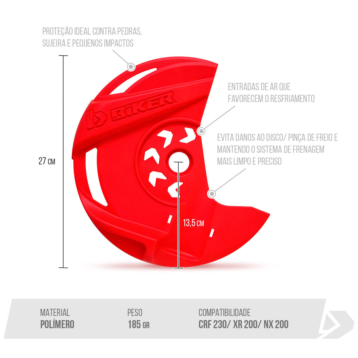 Proteção ideal contra pedras, sujeira e pequenos impactos, evitando danos ao disco/ pinça de freio