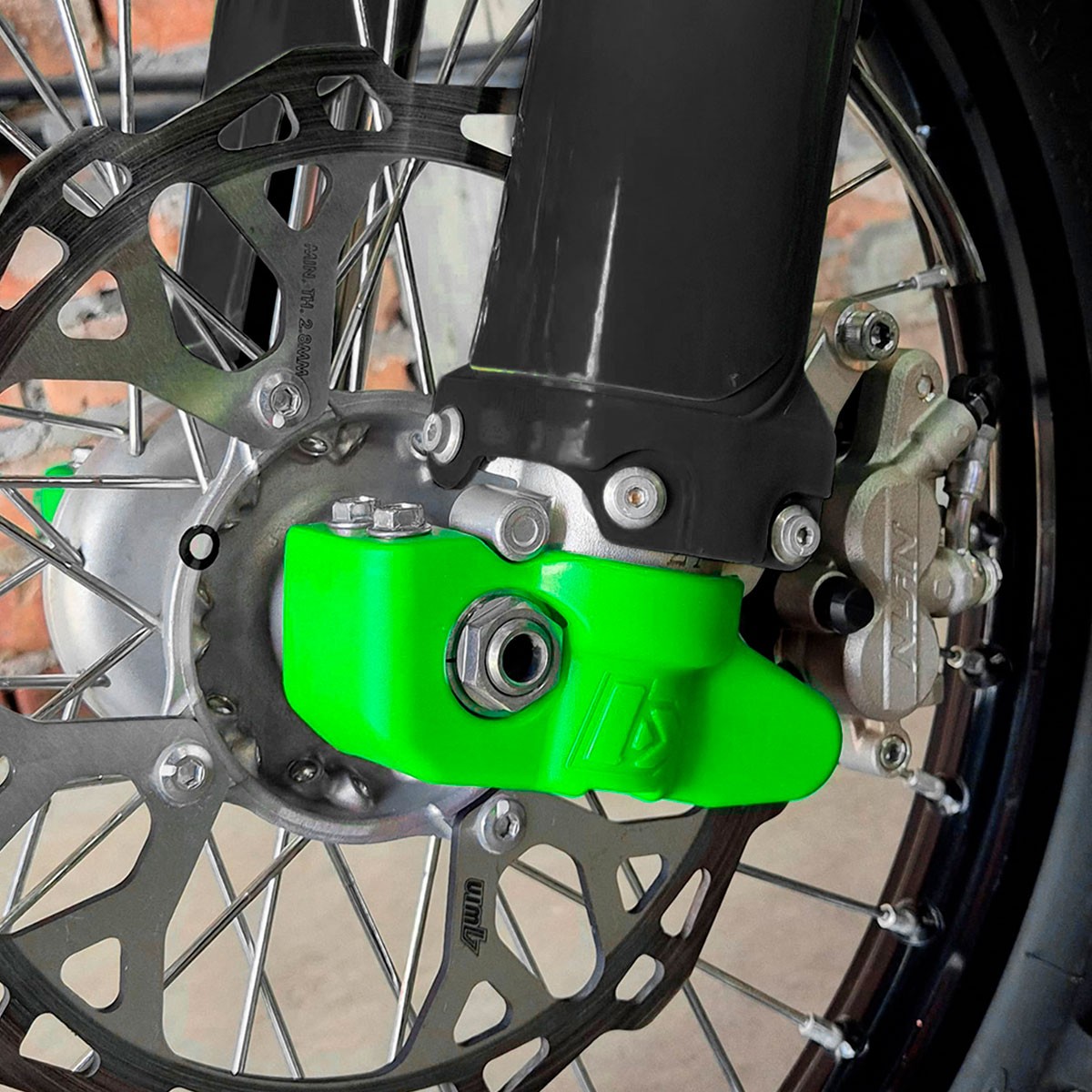 Proteção ideal para a prática do Off Road contra batidas, impactos e quedas, diminuindo o atrito da parte inferior das bengalas ao ter contato com pedras, troncos, raízes e lama. Produzidos em polímero de alta resistência aos impactos. Encaixe perfeito na motocicleta. Buchas metálicas.