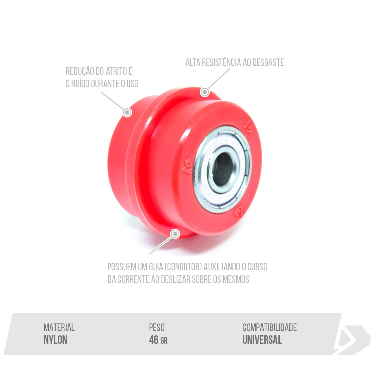 Fabricados em polímero (NYLON PA6) de alta resistência ao desgaste.