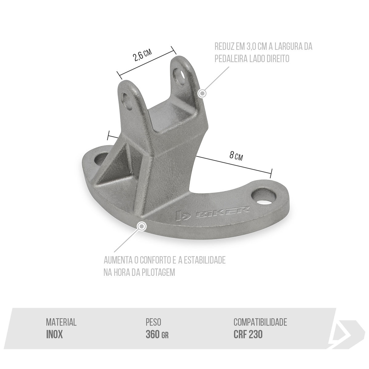 Produto permite reduzir a distância em 3,0cm entre a pedaleira LD e o quadro/ chassis.