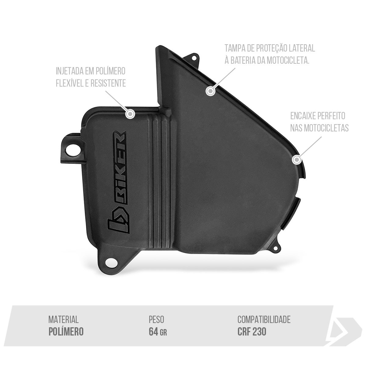 Tampa de proteção lateral à bateria da motocicleta.